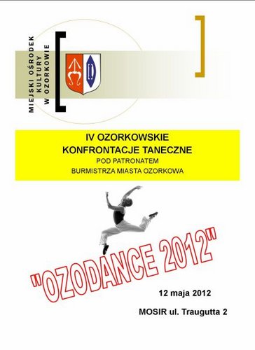 Zapraszamy dziecięce i młodzieżowe zespoły taneczne do udziału w IV Ozorkowskich Konfrontacjach Tanecznych - OZODANCE 2012. Zgłoszenia przyjmujemy do 27 kwietnia br. Patronat nad imprezą objął Burmistrz Miasta Ozorkowa.