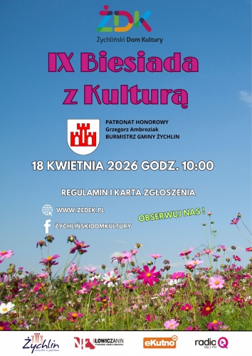 Żychliński Dom Kultury zaprasza do udziału w IX Biesiadzie z Kulturą, która odbędzie się w 18 kwietnia 2026 roku w Żychlinie. Wydarzenie rozpocznie się o godzinie 10:00 i będzie doskonałą okazją do spotkania miłośników muzyki, śpiewu oraz wspólnego kultywowania lokalnych tradycji i kultury. Trwa nabór zgłoszeń.