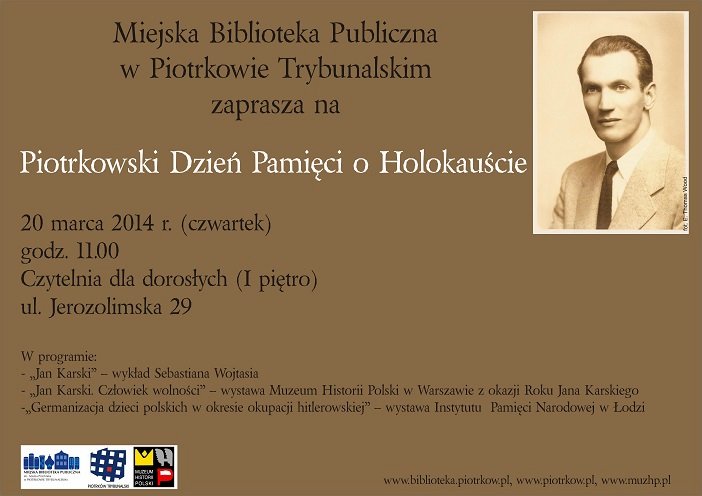 Miejska Biblioteka Publiczna włączając się w obchody Roku Jana Karskiego zaprasza także na „Piotrkowski Dzień Pamięci o Holokauście” poświęcony postaci polskiego emisariusza, który odbędzie się 20 marca 2014 roku o godz. 11.00 w MBP przy ul. Jerozolimskiej 29. W programie wykład pt. „Jan Karski”, który wygłosi Sebastian Wojtaś, nauczyciel historii w Zespole Szkół Ponadgimnazjlanych nr 1 a także prezentacja wystaw „Jan Karski. Człowiek wolności” (Muzeum Historii Polski w Warszawie) oraz „Germanizacja dzieci polskich w okresie okupacji hitlerowskiej” (OBEP IPN w Łodzi).