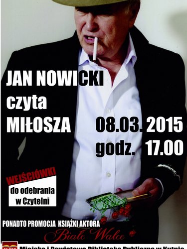 W ramach cyklu spotkań z poezją Miejska i Powiatowa Biblioteka Publiczna w Kutnie 8 marca o godz. 17.00 zaprasza na popołudnie z Janem Nowickim, który przybliży uczestnikom poezję Miłosza. Spotkanie będzie również okazją do promocji Jego najnowszej książki Białe walce.