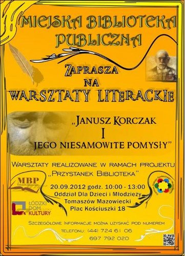Miejska Biblioteka Publiczna w Tomaszowie Mazowieckim oraz Łódzki Dom Kultury w Łodzi zapraszają 20 września 2012 roku na warsztaty literackie przeznaczone dla dzieci do lat 13. Warsztaty są kolejnym wydarzeniem w ramach realizowanego przez książnicę tomaszowską Projektu pn.: Przystanek Biblioteka.