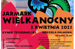 2 kwietnia (Niedziela Palmowa) na Rynku Trybunalskim odbędzie się Jarmark Wielkanocny. Miejski Ośrodek Kultury w Piotrkowie Trybunalskim zaprasza do współpracy wystawców: rzemieślników, artystów, producentów żywności czy artykułów dekoracyjnych.