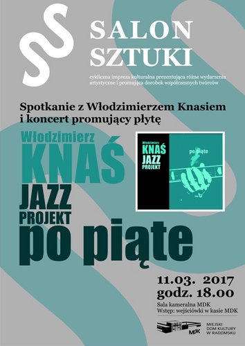 Salon Sztuki tym razem w klimacie jazzu. 11 marca 2017, o godz. 18.00 będzie można spotkać się z radomszczaninem, muzykiem Włodzimierzem Knasiem, który w 2016 r. wydał płytę "Włodzimierz Knaś Jazz Projekt - Po piąte ".