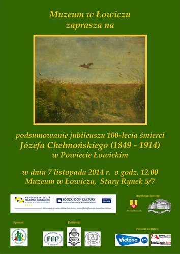 Muzeum w Łowiczu zaprasza na podsumowanie wydarzeń zorganizowanych w 2014 r. w Powiecie Łowickim w związku z jubileuszem 100-lecia śmierci wybitnego malarza, Józefa Chełmońskiego (1849 - 1914). Spotkanie odbędzie się w dniu 7 listopada 2014 r. o godz. 12.00.