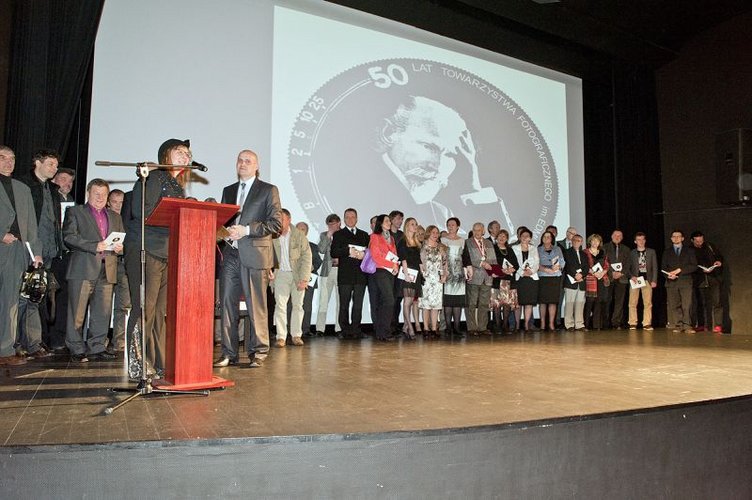 Na scenie pojawił się także prezes Fotoklubu Rzeczypospolitej Polskiej Mieczysław Cybulski, który wręczył odznaczenia członkom radomszczańskiego Towarzystwa - Jakubowi Lechowskiemu, Wacławowi Mazurkowi oraz Marcinowi Kwarcie. Uroczystości na sali widowiskowej zakończyła prezentacja zdjęć członków Towarzystwa.