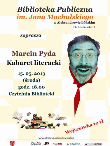 15.05.2013 (środa) godz.18.00; Czytelnia Biblioteki (pl. Kościuszki 12); Kabaret Literacki Marcina Pydy; wejściówki 10 zł.