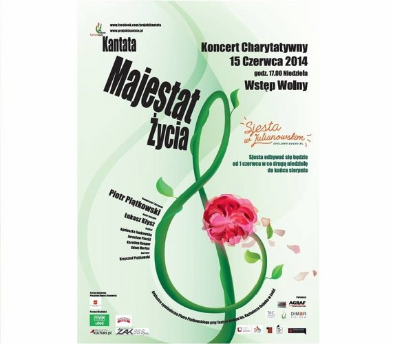W niedzielę 15 czerwca o godz. 15.00 w Parku Julianowskim w Łodzi odbędzie się koncert charytatywny, podczas którego usłyszymy Kantatę - Majestat Życia w wykonaniu Orkiestry Symfonicznej pod dyrekcją Piotra Piątkowskiego i solistów – Agnieszki Jankowskiej, Jarosława Płockiego, Karoliny Kasper, Adama Mortasa, Krzysztofa Piatkowskiego.