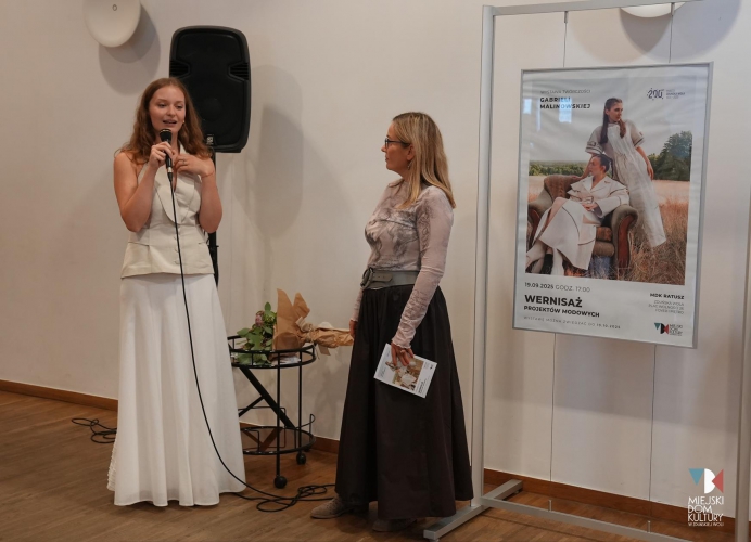Projekty modowe młodej uzdolnionej projektantki ze Zduńskiej Woli pojawiły się w foyer Ratusza. Gabriela Malinowska od 19 września prezentuje w Miejskim Domu Kultury w Zduńskiej Woli swoje prace dyplomowe, projekty modowe z surowej bawełnianej tkaniny, inspirowane książkami i ich teksturami.