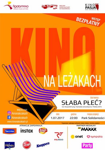 1 lipca Miasto Radomsko i Miejski Dom Kultury w Radomsku zapraszają na kolejną odsłonę wakacyjnego cyklu kina plenerowego - KINO NA LEŻAKACH. W Parku Solidarności o godz. 22:00 rozpocznie się projekcja polskiej komedii "Słaba płeć?". Wstęp wolny!