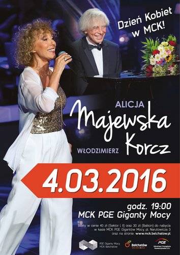 Z okazji Dnia Kobiet, 4 marca o godz. 19.00, do Miejskiego Centrum Kultury Bełchatowie przyjedzie Alicja Majewska i Włodzimierz Korcz aby wspólnie zaprezentować owoce swojej współpracy, na które składają się zarówno intymne ballady jak i żywe songi, opowiadające o jasnej oraz mniej pogodnej stronie życia... Bilety 30-40 zł.