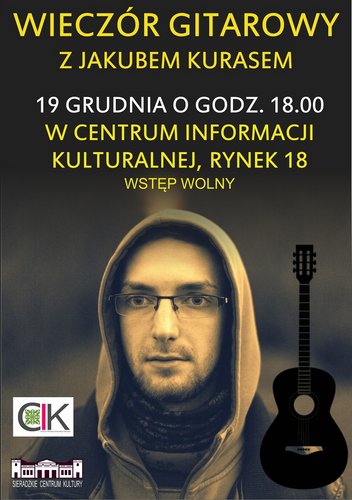 Centrum Informacji Kulturalnej w Sieradzu zaprasza 19 grudnia o godz. 18.00 na wieczór gitarowy z Jakubem Kurasem, który zaprezentuje swój autorski repertuar.