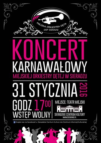 W Teatrze Miejskim w Sieradzu 31 stycznia o godz. 17.00 odbędzie się Koncert Karnawałowy Ochotniczej Straży Pożarnej w Sieradzu. Wstęp wolny!