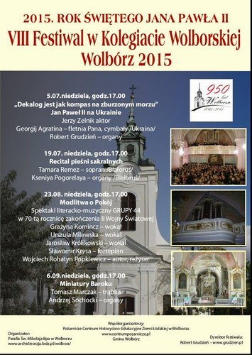 6 września o godzinie 17.00 odbędzie się ostatni koncert w ramach VIII Festiwalu w Kolegiacie Wolborskiej. Tym razem, Tomasz Marczak i Andrzej Sochocki, zabiorą nas w podróż po zakamarkach muzyki barokowej. Tegoroczna edycja festiwalu jest edycją wyjątkową, ponieważ Wolbórz świętuje swoje 950-lecie istnienia.