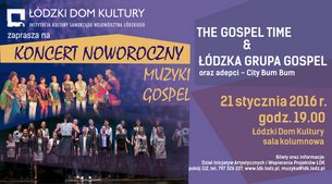 21 stycznia 2016 r. o godz. 19.00 w sali kolumnowej Łódzkiego Domu Kultury odbędzie się Koncert Noworoczny Muzyki Gospel z udziałem The Gospel Time, Łódzkiej Grupy Gospel oraz adeptów City Bum Bum.