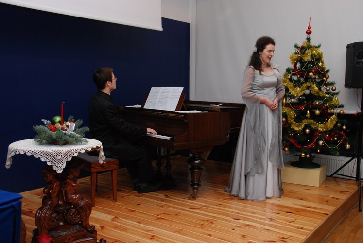 Podczas koncertu wystąpili artyści: Iwona Kania - sopran oraz Franciszek Raczkowski - fortepian. Słowo o muzyce oraz omówienie wykonywanych utworów przybliżyła Anna Kania. Licznie przybyli goście mogli wysłuchać w pierwszej części koncertu m.in. najstarszych kolęd polskich w aranżacji Michała Karbowskiego.