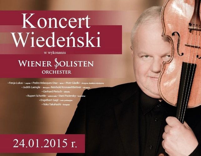 Soliści Wiener Solisten Orchester w składzie: pierwsze skrzypce: Piotr Gładki i Judith Laengle, drugie skrzypce Reinhold Kronawittleitner, altówka- Gerhard Pietsch, wiolonczela- Rupert Schoettle, kontrabas- Stani Pasiersky, instrumenty perkusyjne – Engelbert Gagl, fortepian – Yoko Takahashi wystąpią już 24 stycznia 2015 r. o godz. 19.00.