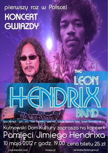 Kutnowski Dom Kultury zaprasza na koncert Pamięci Jimiego Hendrixa. Koncert odbędzie się 10 maja 2012 r.o godz. 19.00. Po raz pierwszy Polskę odwiedzi Leon Hendrix - młodszy brat Jimiego. Cena biletu - 25 zł.