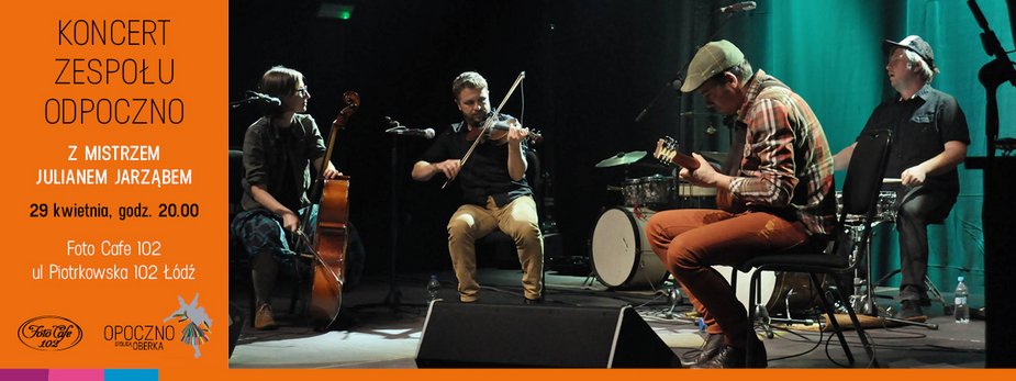 W ramach promocji projektu „Opoczno stolicą oberka” zapraszamy na koncert zespołu „Odpoczno” z Mistrzem Julianem Jarząbem. Koncert odbędzie się 29 kwietnia (piątek) o godzinie 20:00 w „Foto Cafe 102” przy ul. Piotrkowskiej 102 w Łodzi.