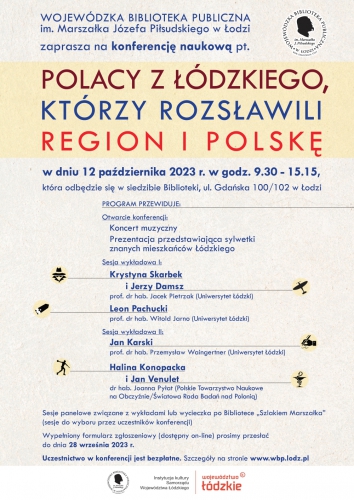 Dyrektor i pracownicy Wojewódzkiej Biblioteki Publicznej im. Marszałka Józefa Piłsudskiego w Łodzi zapraszają na konferencję „Polacy z Łódzkiego, którzy rozsławili region i Polskę”. Rejestracja trwa do 28 września.