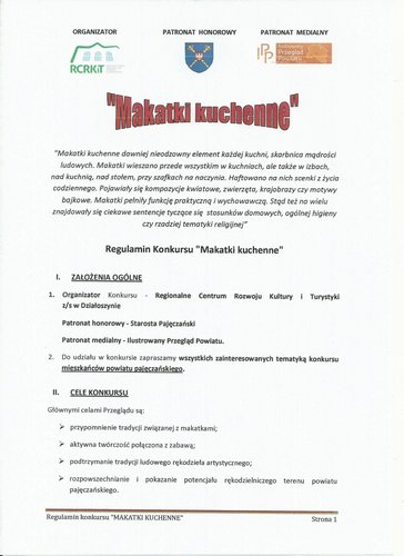 Potrafisz wyszywać? Masz pomysł na ciekawe hasło? Weź udział w konkursie „MAKATKI KUCHENNE” organizowanym przez Regionalne Centrum Rozwoju Kultury i Turystyki w Działoszynie. Termin nadsyłania prac uplywa 15 listopada 2014 r.