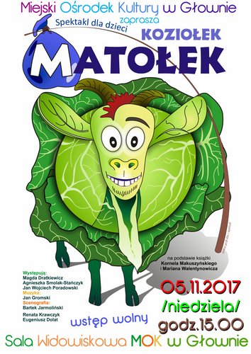 W niedzielę, 5 listopada 2017 r. Miejski Ośrodek Kultury w Głownie zaprasza dzieci na spektakl pt. "Koziołek Matołek" przygotowany przez Akademicki Ośrodek Inicjatyw Artystycznych w Łodzi.