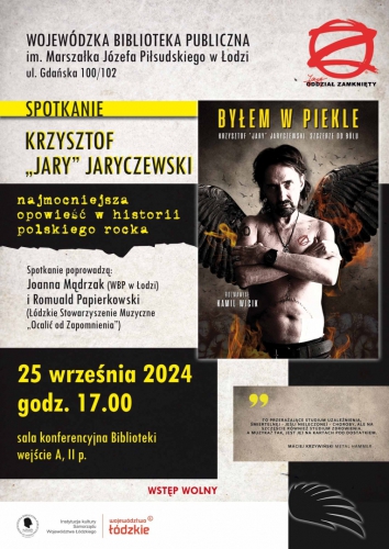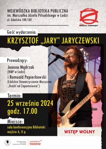 Krzysztof "Jary" Jaryczewski (Oddział Zamknięty) będzie gościem Wojewódzkiej Biblioteki Publicznej im. Marszałka Józefa Piłsudskiego w Łodzi 25 września 2024 (środa) o godz. 17.00. Opowie m.in. o swojej książce autobiograficznej "Byłem w piekle. Krzysztof JARY Jaryczewski szczerze do bólu”.