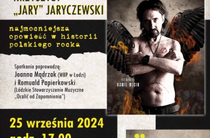 Miejsce: sala konferencyjna Biblioteki, ul. Gdańska 100/102, II piętro.To bezkompromisowa opowieść o życiu i o muzyce, szczera do bólu, nie oszczędzająca nikogo, a już najmniej samego autora niezwykłych opowieści, legendarnego Krzysztofa "Jary" Jaryczewskiego. Fascynującej "spowiedzi" wysłuchał Kamil Wicik, jeden z najlepszych polskich dziennikarzy muzycznych.