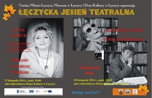 - Teatr TM Tomasz Mędrzak i Agnieszka Sitek w spektaklu „Edukacja Rity” – 30 listopada 2014 r., godz. 18.00, sala widowiskowa Domu Kultury w Łęczycy.