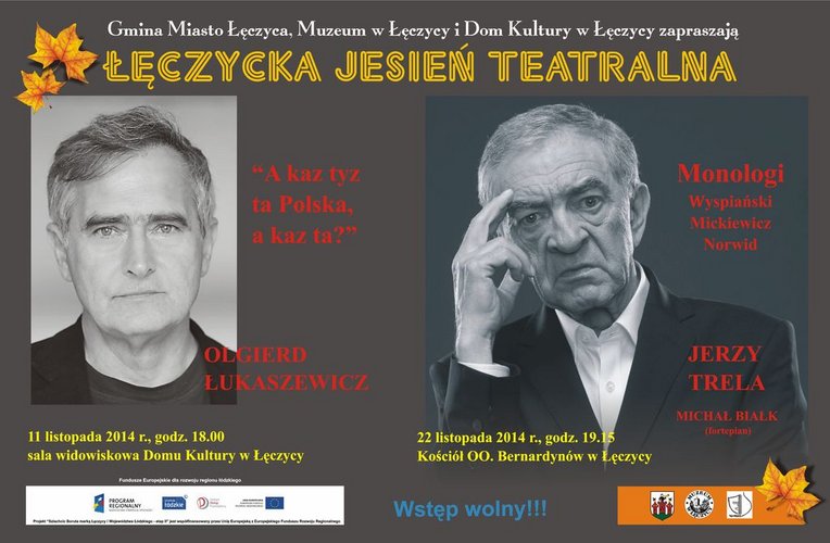 - Jerzy Trela i Michał Białk (fortepian) w spektaklu „Monologi. Wyspiański, Mickiewicz, Norwid” – 22 listopada 2014 r., godz. 19.15, kościół OO. Bernardynów w Łęczycy