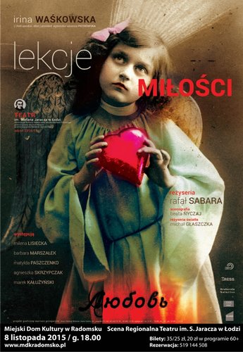 8 listopada o godz. 18.00 w Miejskim Domu Kultury w Radomsku Teatr im. S. Jaracza w Łodzi zaprezentuje "Lekcje miłości" młodej rosyjskiej autorki Iriny Waśkowskiej w reżyserii Rafała Sabary. Historie dwóch rodzin: Łarisy i jej matki oraz Maszy, jej męża i matki opowiedzą: Matylda Paszczenko, Barbara Marszałek, Agnieszka Skrzypczak, Marek Kałużyński i Milena Lisiecka.