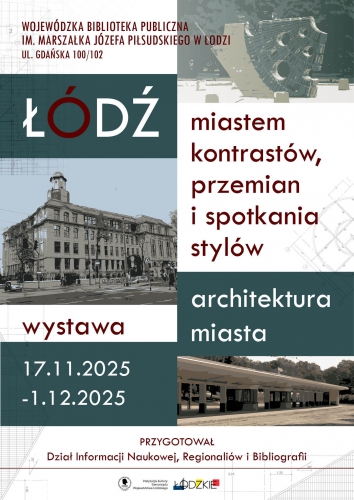 Wojewódzka Biblioteka Publiczna im. Marszałka Józefa Piłsudskiego w Łodzi zaprasza na wystawę "Łódź miastem kontrastów, przemian i spotkania stylów".