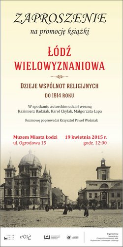 Wydawnictwo Uniwersytetu Łódzkiego oraz Oddział Kultur i Tradycji Wyznaniowych Muzeum Miasta Łodzi serdecznie zapraszają na kolejne spotkanie autorskie z lubianego muzealnego cyklu „Wokół ciekawej książki”. Tym razem zaprezentowana zostanie nowa publikacja: „Łódź wielowyznaniowa. Dzieje wspólnot religijnych do 1914 roku” autorstwa badaczy związanych z Uniwersytetem Łódzkim – profesora Kazimierza Badziaka, doktora Karola Chylaka i doktor Małgorzaty Łapy.