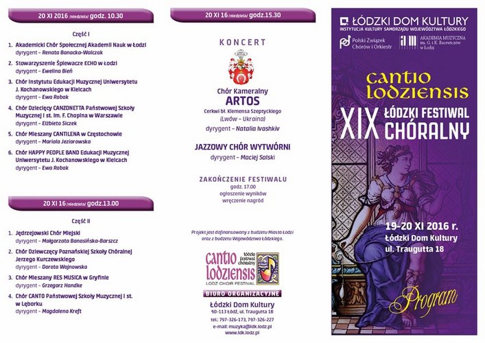 Łódzkiego Festiwalu Chóralnego – Cantio Lodziensis