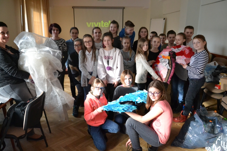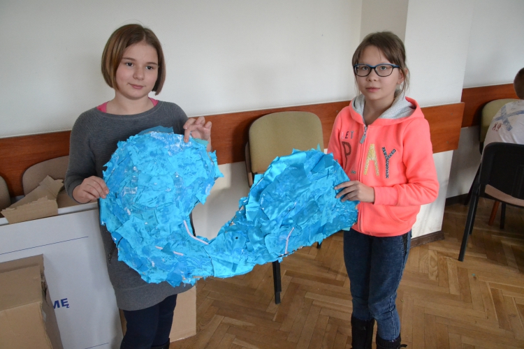 Podczas 1,5 godzinnego pobytu w ŁDK pod czujnym okiem Julity Pierzchały najpierw dowiedzieli się min. co to jest ekologia, recykling czy upcykling a późnej obejrzeli krótkie filmiki o tematyce ekologicznej m.in. dot. segregacji śmieci czy zanieczyszczenia powietrza. Wspomagani swoimi opiekunkami ze szkoły p. Dorotą Romanowską i p. Agnieszką Myszkowską oraz MOK p. Urszulą Zawadzką tworzyli ubiory z fragmentów tkanin, filcu, pasmanterii i dodatków krawieckich przywiezionych przez siebie, a także przygotowanych przez prowadzącą jako „rzeczy do wyrzucenia” naklejając je bądź przyszywając do tkaniny lub kartonu.Dwudziestoosobowa grupa z Głowna kilka tygodni temu rozpoczęła prace nad autorskim scenariuszem do spektaklu teatralnego „ZIELONA REWOLUCJA”, który nosi tytuł TYDZIEŃ Z ŻYCIA KRETA JÓZIA. Przydzielono role i systematycznie odbywają się próby. Warsztaty natomiast były inspiracją do wykonania projektów kostiumów dla pierwszoplanowych postaci spektaklu: kreta Józia, dwóch wiewiórek i myszki. Zdobyta wiedza podczas tych warsztatów, a także kolejnych, które odbędą się w Akademii Sztuk Pięknych w Łodzi oraz w Instytucie Architektury i Urbanistyki Politechniki Łódzkiej wykorzystana zostanie na dokończenie kostiumów, stworzenie masek, rekwizytów i scenografii potrzebnej do spektaklu.