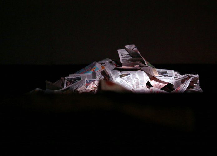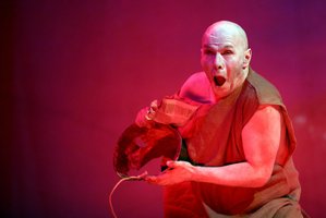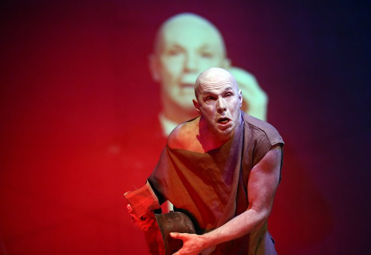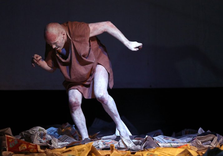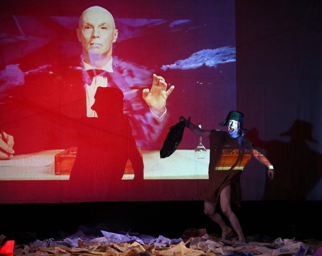 Na scenie, w środku symbolicznego apokaliptyczne obrazu, pojawia się samotny tancerz. Zmęczony, z cierpieniem malującym się na twarzy, zapisanym w ciele i w gestach, staje się symbolem ludzkości. W tle, na białym ekranie, oglądamy dynamicznie zmontowane obrazy wojny, fragmenty filmów dokumentalnych, fabularnych i zdjęć. Te mocne, brutalne obrazy, którym towarzyszy głośna i ostra muzyka, to sceniczna rzeczywistość, na tle której toczy się odwieczna walka dobra ze złem. Po kilkunastu minutach na białym ekranie pojawia się postać (dyktatora ?), której spowolnione gesty kontrastują z narastającym na scenie chaosem. Te dwie, skrajnie różne rzeczywistości, sceniczna i filmowa jeszcze bardziej potęgują wrażenie szaleństwa. Celowy zabieg, który miał nas wyrwać z poczucia bezpieczeństwa, sprowokować do zastanowienia i zadawania pytań, to kulminacyjny punkt spektaklu. Po nim następuję symboliczna scena, podczas której rodzi się dobro i piękno. Towarzyszy jej śpiewana na żywo stara, białoruska pieśń opowiadająca o trzech aniołach niosących duszę, duszę tak ciężka od grzechu, że nie może trafić do nieba… A niebo choć jest nieskończenie piękne, pozostaje puste… I chyba właśnie ta pieśń jest pointą obu spektakli, które choć operują różnymi środkami wyrazu, dotykają najgłębszej istoty człowieczeństwa. Być może w naszym świecie dobro nie może istnieć bez zła a to co piękne i czyste rodzi się w bólu i doświadczaniu tragedii.