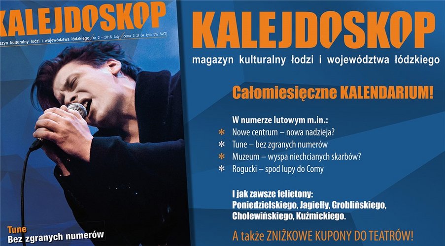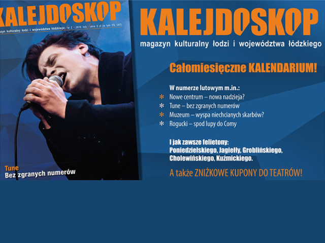 W najnowszym numerze Kalejdoskopu przeczytacie o trzeciej już edycji plebiscytu Armatka Kultury na "najbardziej wystrzałowe wydarzenie kulturalne" mijającego roku, o próbie wskrzeszenia Łodzi filmowej poprzez utworzenie Narodowego Centrum Kultury Filmowej. Dowiecie się dlaczego zespół Tune, goszczący niejednokrotnie na scenie ŁDK-owskiego Rockowania wystąpił w talentshow. Pod lupę wzięto również Teatr Pod Lupą, macierz aktorsko-muzycznych sław takich jak Piotr Rogucki, Dobromir Dymecki czy Wojciech Zieliński. Przypominamy, że w każdym numerze "Kalejdoskopu" czekają na was kupony zniżkowe do wybranych teatrów.