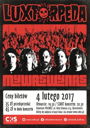 Jeden z najlepszych zespołów polskiej sceny rockowej ponownie zagra w Skierniewicach! Centrum Kultury i Sztuki oraz Stowarzyszenie Qltur Generator 4 lutego o godz. 19.00 zapraszają na koncert zespołu Luxtorpeda w ramach projektu W rytmie rocka. Bilety w cenie 35-45 zł.