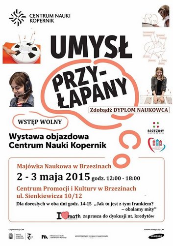 Centrum Promocji i Kultury w Brzezinach zaprasza dzieci, młodzież i dorosłych w dniach 2 - 3 maja na wystawę objazdową Centrum Nauki Kopernik - Umysł Przyłapany. Ekspozycja składa się z 13-15 interaktywnych eksponatów. W programie wiele dodatkowych atrakcji, m.in.: "pod rządami emocji", "miedzy zmysłami", "wyginaj śmiało ciało" i "parzydełko".