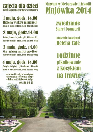 Muzeum w Nieborowie i Arkadii zaprasza na majówkę! W dniach 1-4 maja uczestnicy będą mieli okazję m.in. do odwiedzenia Starej Oranżerii, do tej pory niedostępnej dla zwiedzających, wzięcia udziału w warsztatach plastycznych, a także piknikowania z kocykiem w ogrodzie nieborowskim i arkadyjskim! Na zajęcia obowiązują wcześniejsze zapisy!