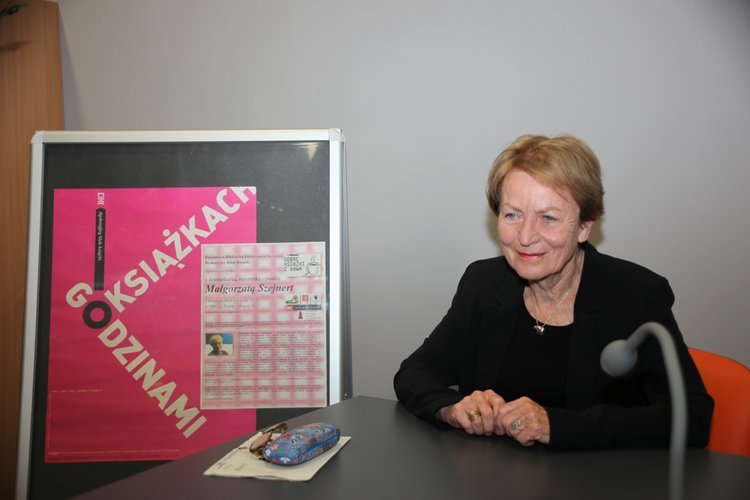 Przy lekturze kolejnych książek narodziło się wiele pytań do autorki. Dzięki pomocy i pośrednictwu Kingi Siekierskiej z Wojewódzkiej Biblioteki Publicznej w Łodzi udało się zorganizować spotkanie autorskie z ulubioną pisarką. Podczas spotkania padały pytania o warsztat pracy, o bohaterów reportaży i książek, o wybór tematów. Małgorzata Szejnert zdradziła, że zawsze impulsem do opracowania jakiegoś zagadnienia staje się jakiś interesujący szczegół, drobiazg. W przypadku książki "Wyspa klucz" był to buttonhook (przyrząd do zapinania guzików stosowany także do wykrywania jaglicy). Miłym zaskoczeniem dla uczestników spotkania były związki pisarki z naszym miastem. Przed wojną w obecnym "Jagiellończyku" języka polskiego uczył Edmund Szejnert - ojciec pisarki. Jego uczennicą była m. in. Janina Mrozińska. Ciepłe wspomnienia o profesorze Szejnercie znajdują się w książce "Z dziejów Liceum Ogólnokształcącego im. Kazimierza Jagiellończyka w Sieradzu". Małgorzata Szejnert w Sieradzu mieszkała do trzeciego roku życia. Później wyjechała z rodzicami do Białej Podlaskiej. Wizyta w Sieradzu stała się dla autorki okazją do sentymentalnych wspomnień.