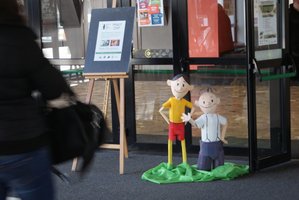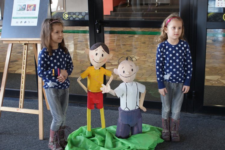 Młodzi DKF-owicze zobaczyli w niedzielę pięć bajek ze Studia Filmów Rysunkowych w Bielsku – Białej: Pantofelek Kopciuszka, Uwięzioną Królewnę, Zaklęty zamek, Brzydkie kaczątko i Latający kufer z cyklu Bajki Bolka i Lolka. Dzieci wraz ze swoimi rodzicami mieli także okazję obejrzeć krótki film (animację poklatkową), przygotowany przez uczestników warsztatów artystycznych (pod kierunkiem Tomasza Zawadzkiego), które odbyły się w tym roku w Miejskim Domu Kultury w Radomsku podczas ferii zimowych. Podczas projekcji obecni byli również współautorzy filmu, opowiadającego o dziewczynce porwanej przez wir czasu do krainy pełnej postaci z różnych bajek. Swoją wiedzą na temat animacji i jej rodzajów, podzieliła się z publicznością Pani Halina Kucharska - wolontariuszka z Miejskiego Ośrodka Pomocy Społecznej w Radomsku, która niemal od zawsze inspiruje dzieci i młodzież do twórczej aktywności. Pani Halina podczas prelekcji, wspomniała o polskich Studiach Rysunkowych i ich filmowym dorobku (m.in. o Studiu Filmowym Se-ma-for w Łodzi i Studiu Miniatur Filmowych w Warszawie); przypomniała także, że w Bielsku – Białej znajduje się pomnik Bolka i Lolka. Po projekcji, najmłodsi opowiedzieli o swoich wrażeniach po obejrzeniu bajek i wzięli udział w konkursie z nagrodami. Miłą niespodzianką dla Maluchów były postacie Bolka i Lolka –wykonane przez Damiana Grabarczyka, które witały ich przed seansem.