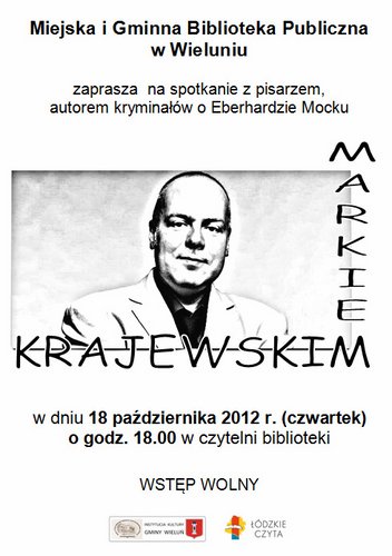 Miejska i Gminna Biblioteka Publiczna im. Leona Kruczkowskiego w Wieluniu zaprasza na spotkanie autorskie z Markiem Krajewskim, które odbędzie się 18 października 2012 r. o godz. 18.00. Wstęp wolny!