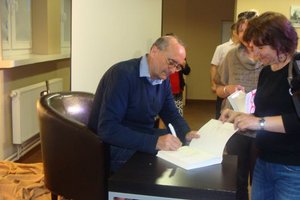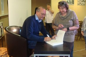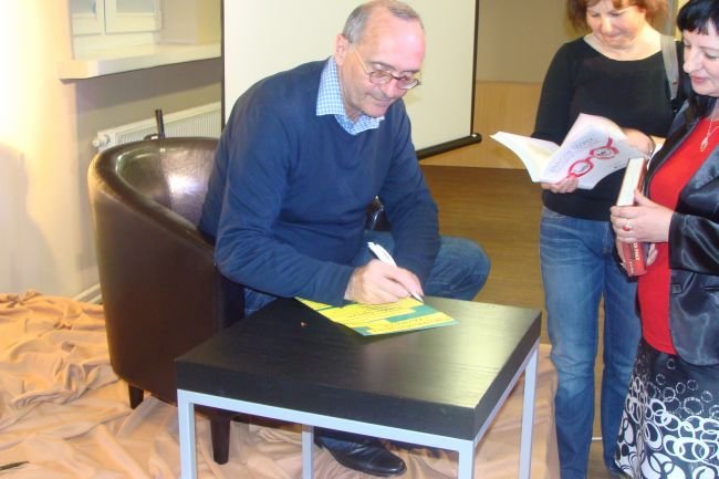 14 maja 2013 naszą książnicę odwiedził znakomity gość Michał Ogórek, znany każdemu felietonista, dziennikarz, autor książek. Jak powiedział nie lubi używać określeń krytyk filmowy i satyryk, bo dziś te słowa mają zupełnie inne znaczenie niż dawniej. W ciągu dwóch godzin uczestnicy spotkania usłyszeli wiele anegdot i historii z życia Michała Ogórka. Dowcipnie i ciekawie zdradzał kulisy swojej pracy, momentami wywołując salwy śmiechu publiczności. Przyznał, że pisze, aby zarabiać na życie. Nie zdarza mu się pisać „do szuflady”, gdyż grozi to grafomaństwem. W swoich tekstach komentuje rzeczywistość, która go dotyka i porusza, ale nigdy nie jest jego celem upokorzyć kogoś, „wdeptać go w ziemię”. Jak sam przyznał pisze dla otuchy czytelników. Te oraz wiele, wiele innych opowieści wypełniły całe spotkanie, które upłynęło w bardzo przyjemnej atmosferze. Na koniec oczywiście nie zabrakło autografów i wspólnych zdjęć.