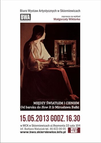 Biuro Wystaw Artystycznych w Skierniewicach zaprasza 15 maja o godz. 16.30 na wykład Małgorzaty Wiktorko: MIĘDZY ŚWIATŁEM I CIENIEM. OD BAROKU DO HOW IT IS MIROSŁAWA BAŁKI.