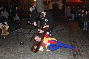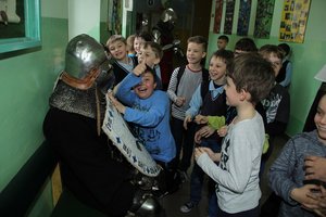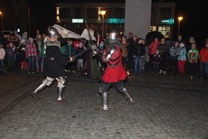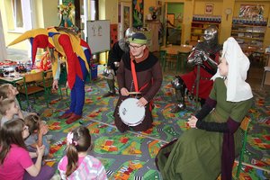 Spektakl opowiadał historię dwóch rycerzy ubiegających się o rękę pięknej damy, którym w miłosnych awansach przeszkadza krnąbrny błazen. Po zakończeniu właściwej akcji odbył się turniej sprawności rycerskich z udziałem publiczności. W średniowieczne opowieści wprowadzał herold opisujący poszczególne sceny. Inicjatorem obchodów Międzynarodowego Dnia Teatru było Centrum Promocji i Kultury w Brzezinach.