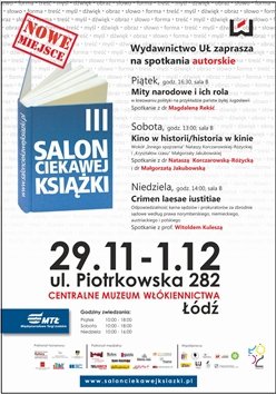 Promocja odbędzie się podczas III Salonu Ciekawej Książki w Centralnym Muzeum Włókiennictwa w Łodzi przy ul. Piotrkowskiej 282