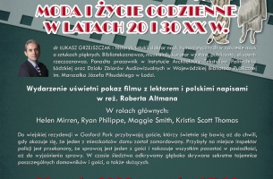 Wydarzenie uświetni pokaz filmu z polskim lektorem i napisami w reż. Roberta Altmana.W rolach głównych występują: Helen Mirren, Ryan Philippe, Maggie Smith, Kristin Scott Thomas.