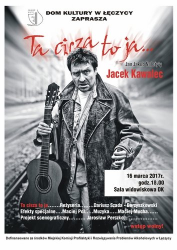 Dom Kultury w Łęczycy serdecznie zaprasza na doskonały monodram w wykonaniu Jacka Kawalca. Sztuka "Ta cisza to ja" jest opowieścią o trzech nałogach. O nałogu alkoholowym, o nałogu aktorstwa i o nałogu miłości. O tym, że dwa pierwsze nałogi dotyczą niektórych, a ten trzeci dotyka każdego.