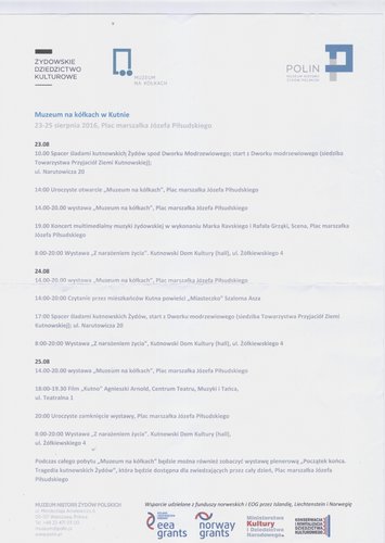 Muzeum Historii Żydów Polskich POLIN we współpracy z Miastem Kutno zaprasza do obejrzenia projektu „Muzeum na kółkach”. Nowoczesna ekspozycja połączona z bogatym programem edukacyjnym w telegraficznym skrócie przybliży historię tysiąca lat dziejów społeczności żydowskiej w Polsce. W dniach 23 – 25 sierpnia Muzeum będzie gościć w Kutnie. Wstęp wolny! Zapraszamy do zapoznania się z programem wydarzeń!