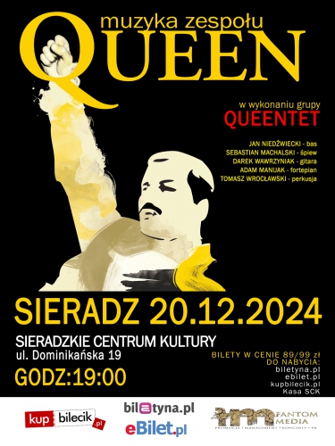 20 grudnia 2024 roku w Sieradzkim Centrum Kultury wystąpi grupa QUEENTET, która zaprezentuje program wypełniony nieśmiertelnymi utworami zespołu QUEEN.